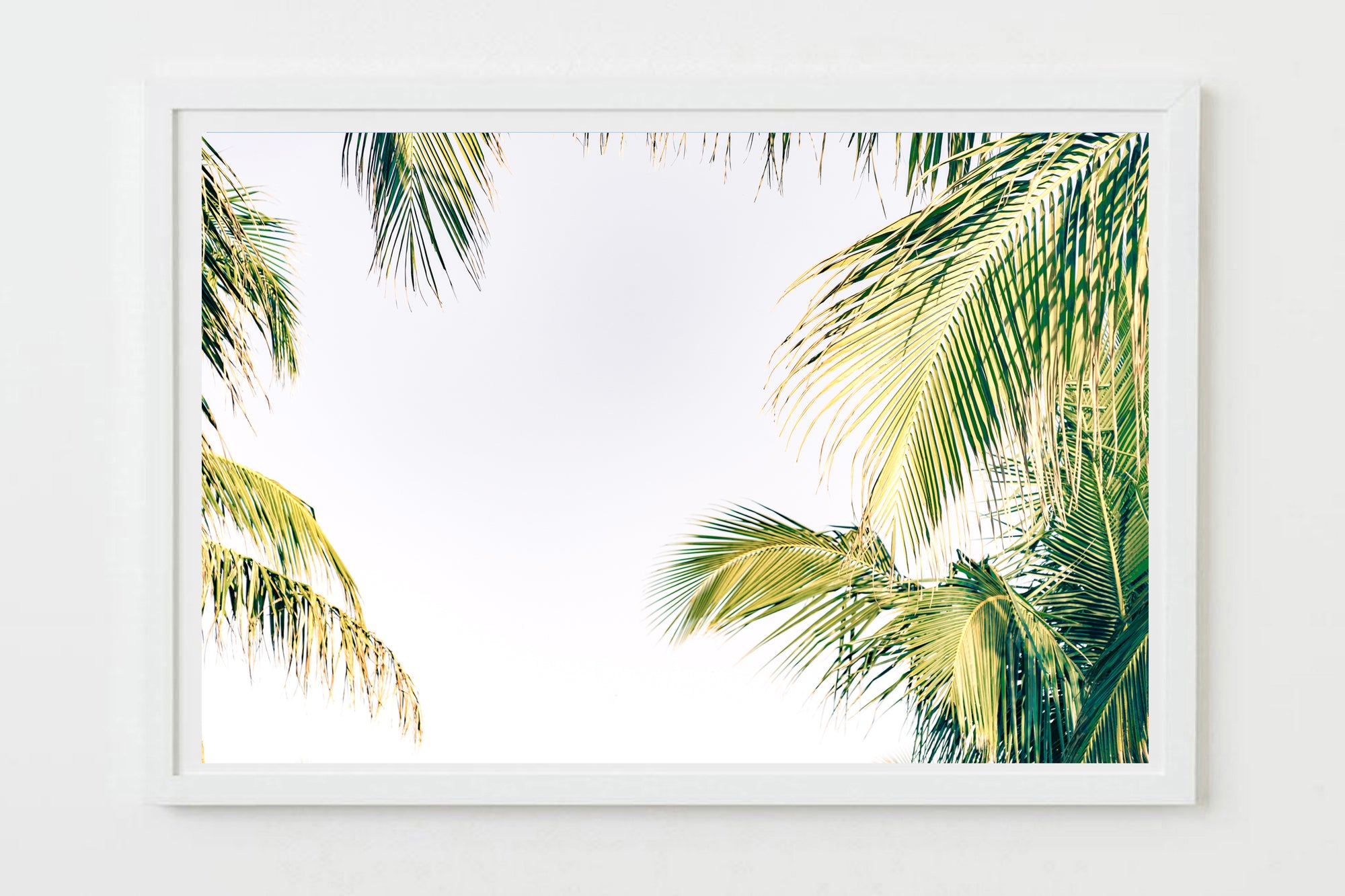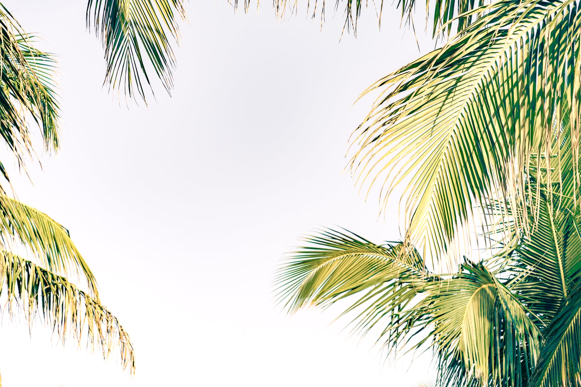 palm leaves over blue